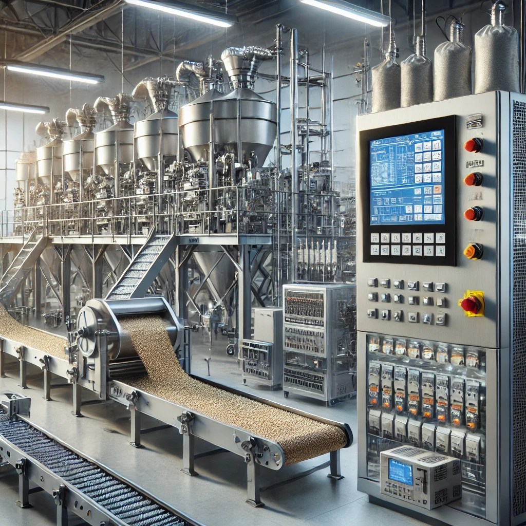 PLC, IHM, relays, contactores, térmicas, disyuntores, sensores, interruptores, pulsadores, torres iluminadoras, variadores de frecuencia, relés de estado sólido, controles de temperatura, sondas de temperatura.
